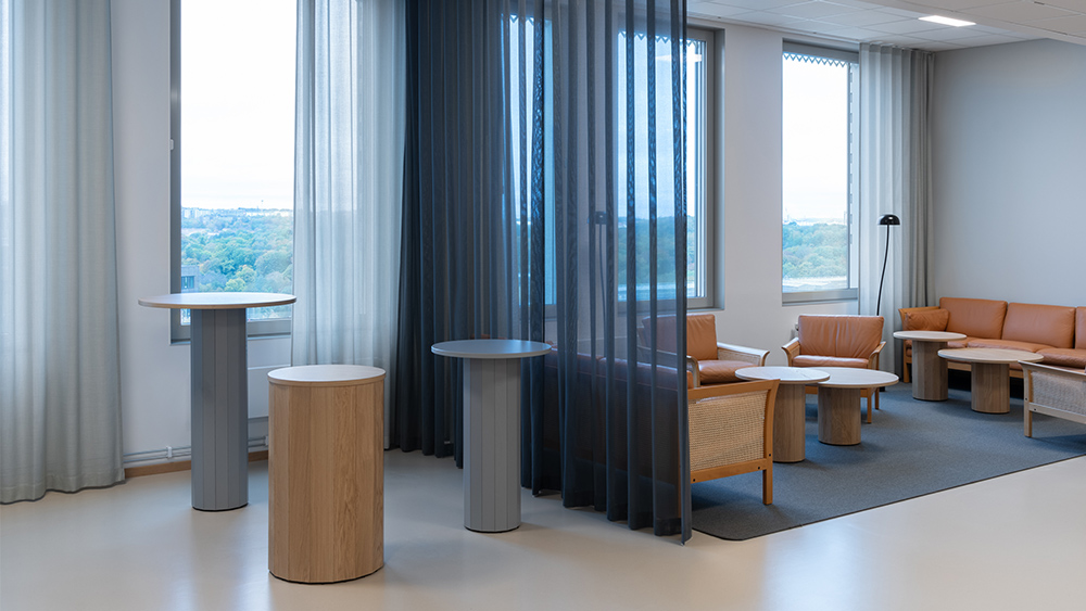 I Natrium Huset är Cap bordet möblerat rakt genom hela lunch/café del. Bordet är tillverkat i speciallaminat och även med oval skiva. På stora entrétorget, under den magnifika, trappan hänger tidskriftsställ Front. Rumsavdelaren Ray avskiljer korridoren mot co-working platser. Cap soffbord, pelarbord samsas med Cap Podium på vissa ställen i lokalerna.