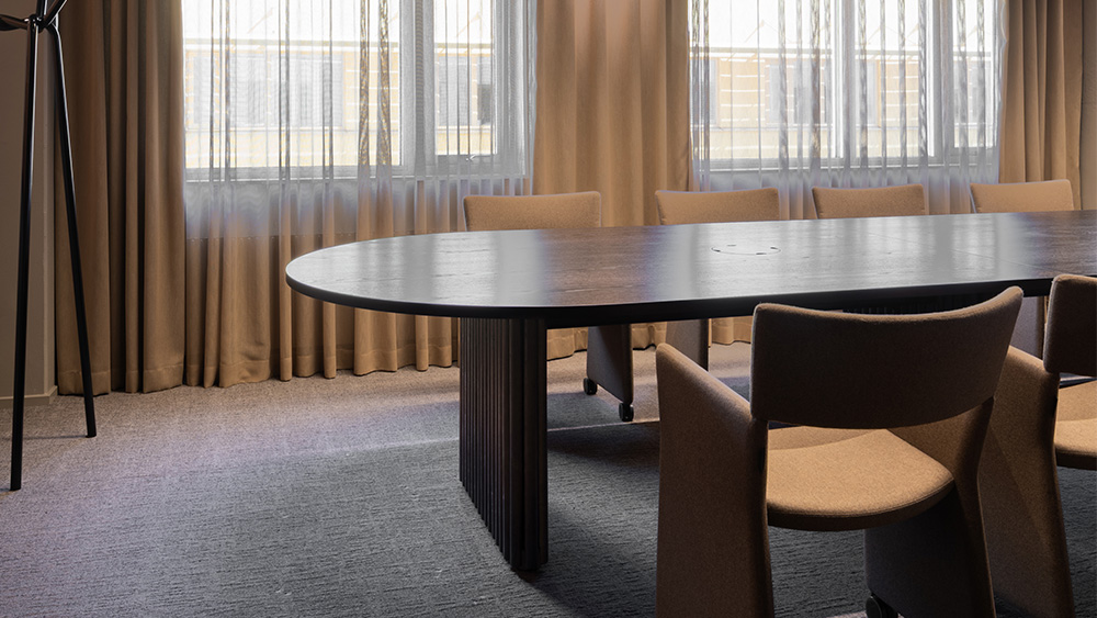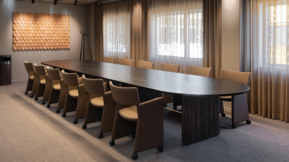 Jönköping University har valt lokalproducerade möbler från Karl Andersson & Söner. Det är konferensbord Opera i oval form. Pelarbord Pivå och till det Sander Bar.