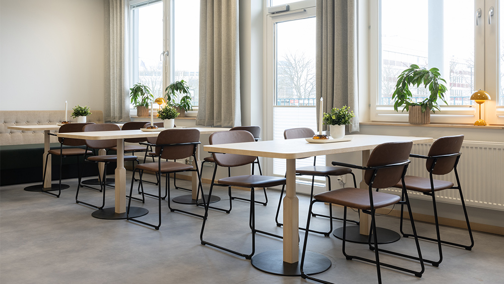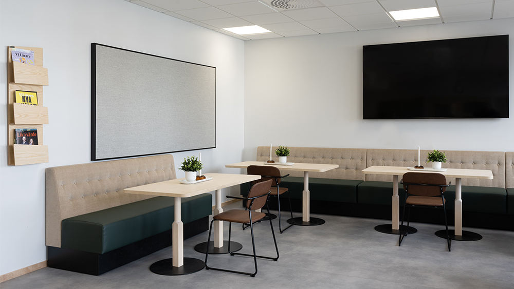 Sanda Högstadium i Huskvarna har valt lokalproducerade möbler d v s från Karl Andersson & Söner. I personalutrymmen är det Woodwork bord och pelarbord, tidskriftsställ Arc samt pall Kaz.