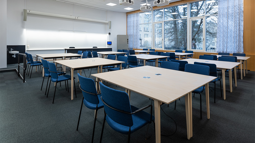 The training rooms at Albano Campus (University in Stockholm) are furnished with Press folding table incl. electrical outlet, castors and modesty panel.