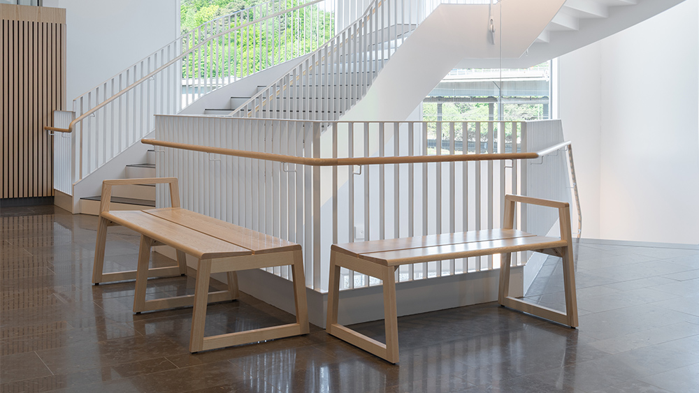 Outside some of the negotiation rooms at Borås District Court, you can wait on a Meander bench, a Facile sofa, or a Milo stool. Or why not sit around the Terrane coffee table.