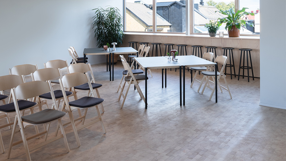 Länsförsäkringar in Växjö has furnished its office with Cap meeting tables in various colors and shapes. Kanecct the stackable table and the foldable Colo Chair.