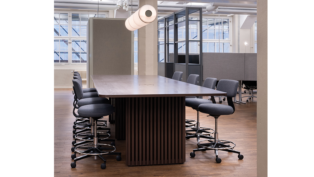 The Opera conference table at Deloitte is equipped with cable management to allow you to choose which power outlets are desired. The power outlets are placed under the lid, and the cable is routed through the beam leg. No visible cables hanging under the table.