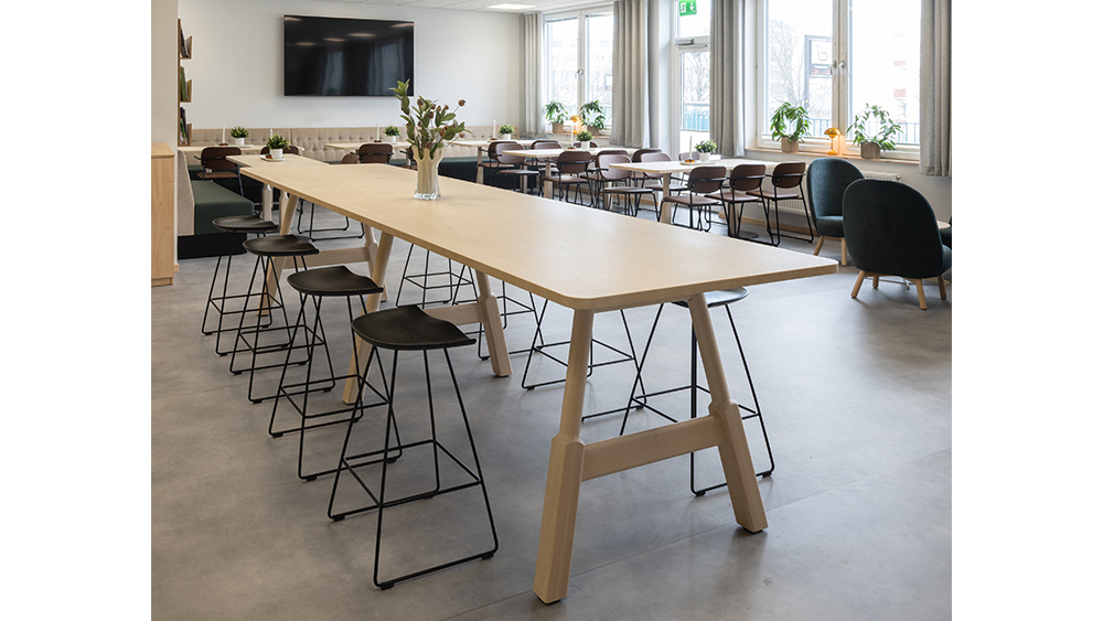 Sanda Högstadium (High School) in Huskvarna has chosen locally produced furniture, i.e., from Karl Andersson & Söner. In staff areas, there are Woodwork tables and pedestal tables, Arc magazine racks, and Kaz stools.